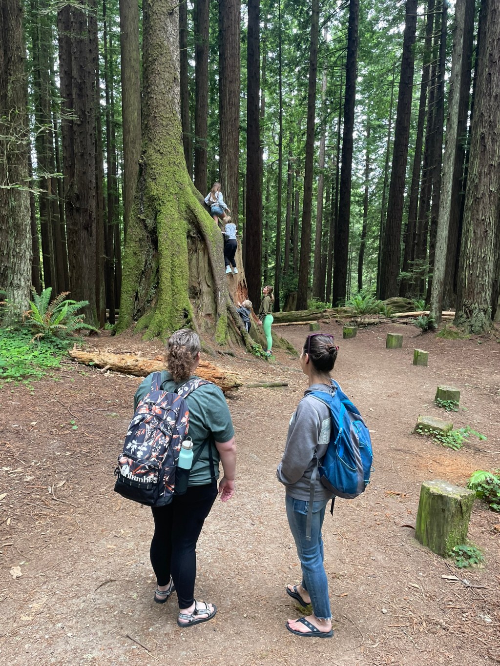 We headed out on the main hike, taking to slowly, stopping as the kids’ interest was piqued, there was something to climb, and the forest’s majesty drew our awe. We talked about motherhood, and our childhoods; we remembered and we revisited and we laughed a bunch. Our kids immediately took to each other and had a blast finding banana slugs, climbing stumps, and exploring the forest the three of us know so well. My husband got to take it all in, seeing a side of me he’s really only heard about. I remembered the specifics of the trail with no effort and was able to guide us exactly.